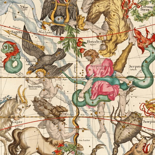 The history of Ophiuchus is ancient and full of controversy. Before the Romans modified the calendar by adding the months Julius and Augustus (which is why September, from seven, is the ninth month), society was matriarchal, the calendar was lunar, having13 months of28 days each and one day of celebration, and most constellations were symbolized by feminine energies, including Ophiuchus, which represented the shamanic woman, the healer. Later, Ophiuchus was associated with historical male figures related to medicine.